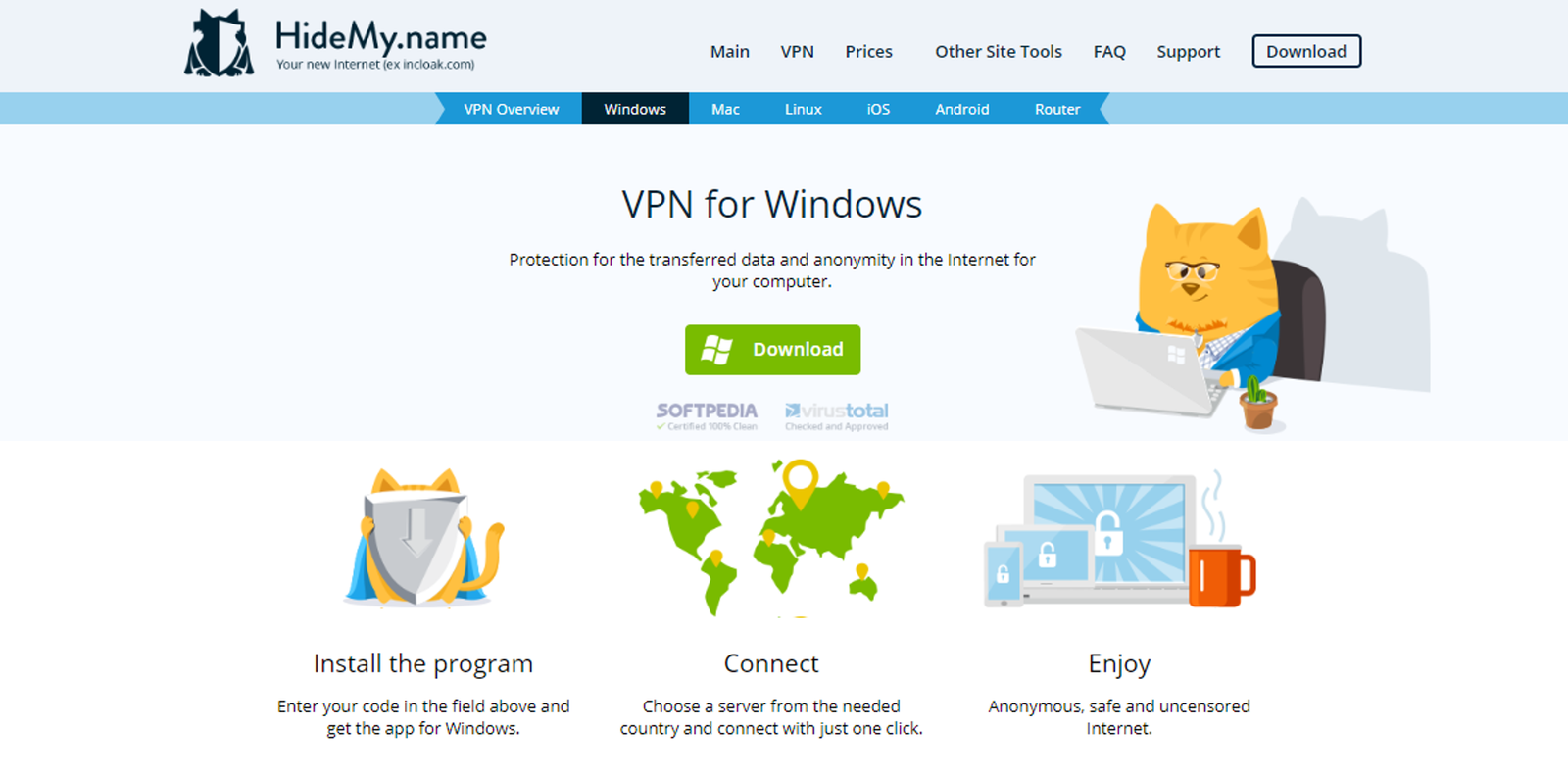 HideMy.name has user-friendly native apps for Windows, Android, Mac, iOS, and Linux devices but can also be configured on routers with the help of detailed manual setup instructions available on the website.